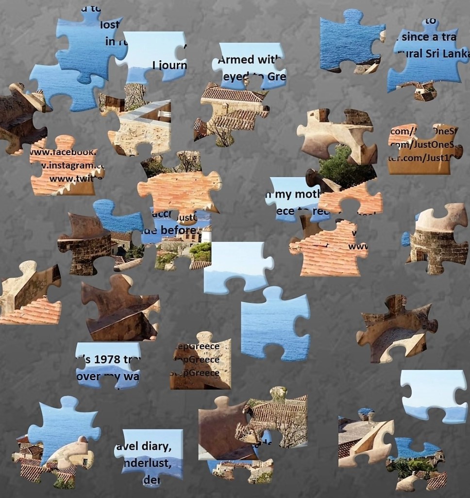 Sign up to Stepping Up to the Page, my bi-monthly author newsletter, and get a taste of Greek travel with two free puzzles (a jigsaw created from one of my travel photographs, and a word search built around my itinerary / book chapters).